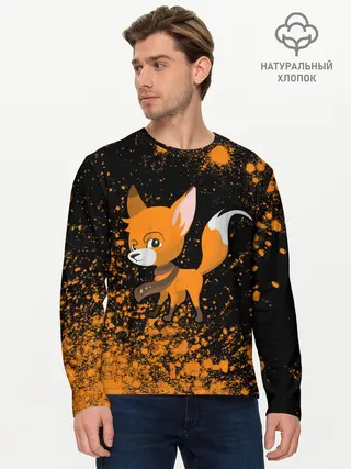 Мужской лонгслив базовый / Лиса - В Шарфике - Взрыв