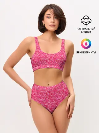 Женские топ и трусы / Цикламеновая пиксельная абстракция