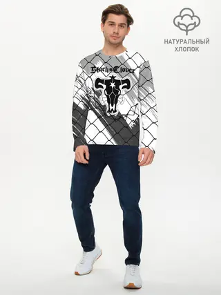 Мужской лонгслив базовый / Чёрный клевер бык за решеткой.