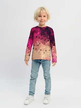 Детская базовая футболка / Бежево-малиновый абстрактный
