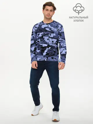 Мужской лонгслив базовый / Синий камуфляж в клетку