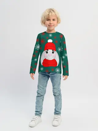 Мужской лонгслив базовый / зимний кролик и снежинки