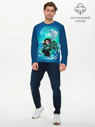 Мужской лонгслив базовый / Тандзиро Камадо с мечом