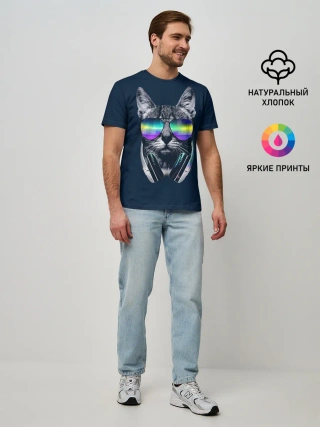 Мужская базовая футболка / Кот в Наушниках