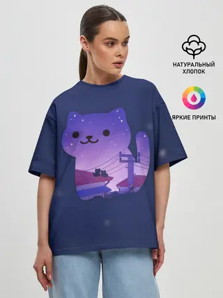 Женская футболка оверсайз / Ночной Котик