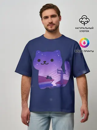 Мужская футболка оверсайз / Ночной Котик