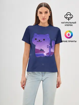 Женская базовая футболка / Ночной Котик