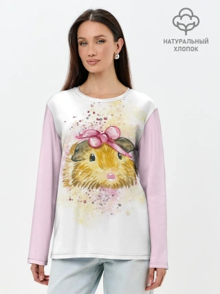 Лонгслив женский. Хлопок / Морская свинка акварелью