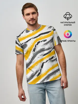 Мужская базовая футболка / Серый-желтый