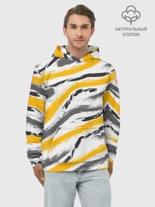 Худи мужской база хлопок / Серый-желтый