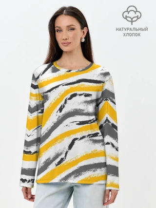 Лонгслив женский. Хлопок / Серый-желтый