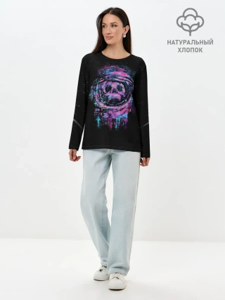 Лонгслив женский. Хлопок / Космический Череп