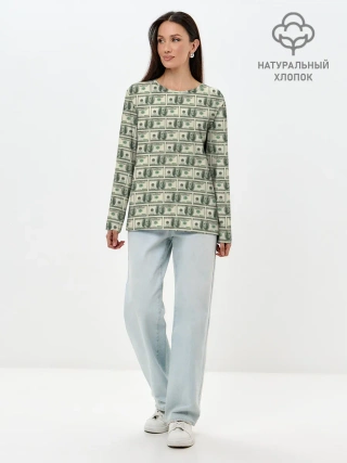Лонгслив женский. Хлопок / Доллары