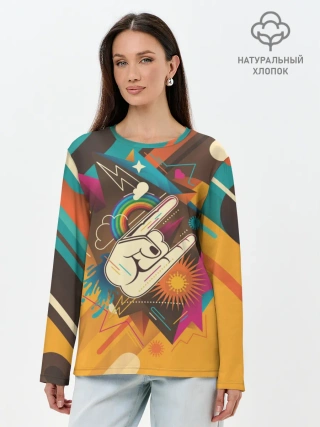 Лонгслив женский. Хлопок / Распальцовка music