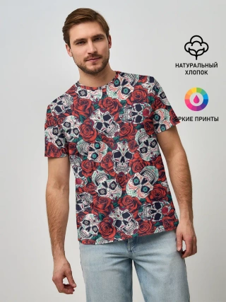 Мужская базовая футболка / Тату черепа и розы