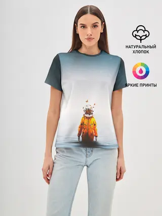 Женская базовая футболка / КОСМОНАВТ В МОРЕ