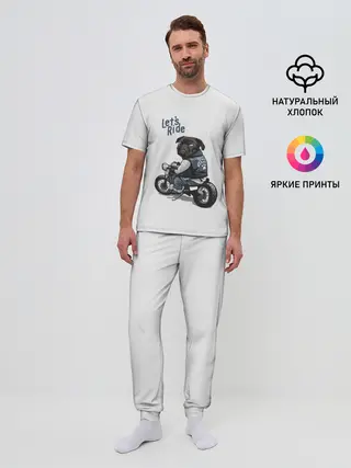 Мужская пижама с брюками / Pug Rider | Байкер Мопс