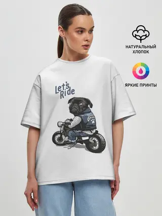 Женская футболка оверсайз / Pug Rider | Байкер Мопс
