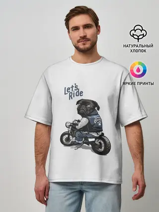 Мужская футболка оверсайз / Pug Rider | Байкер Мопс