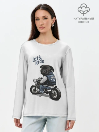 Лонгслив женский. Хлопок / Pug Rider | Байкер Мопс