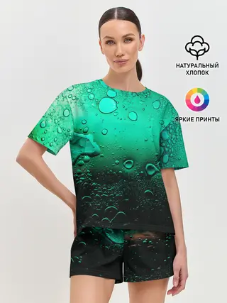 Женская футболка оверсайз / Зеленые капли клетки