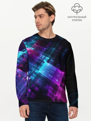 Мужской лонгслив базовый / Неоновая абстракция