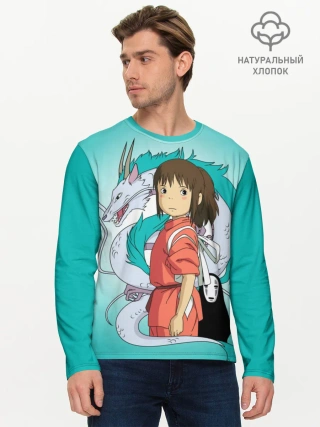 Мужской лонгслив базовый / Тихиро и Хаку зеленый фон