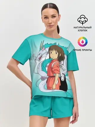Женская пижама с шортами / Тихиро и Хаку зеленый фон
