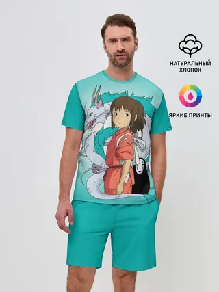 Мужской костюм с шортами / Тихиро и Хаку зеленый фон