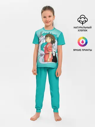 Детская пижама с брюками / Тихиро и Хаку зеленый фон