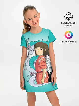 Детское платье / Тихиро и Хаку зеленый фон