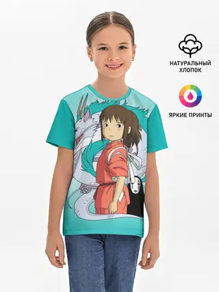 Детская базовая футболка / Тихиро и Хаку зеленый фон