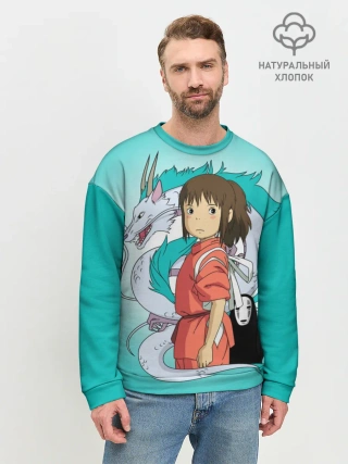 Мужской свитшот базовый / Тихиро и Хаку зеленый фон