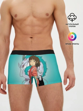 Мужские трусы боксеры / Тихиро и Хаку зеленый фон