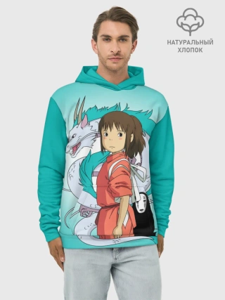Худи мужской база хлопок / Тихиро и Хаку зеленый фон