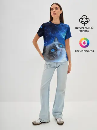 Женская футболка оверсайз / Сердитый кот в космосе
