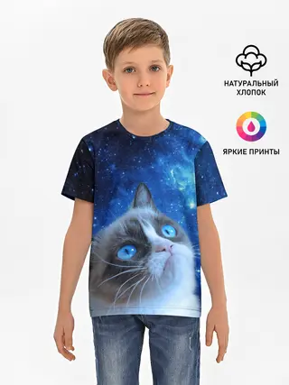 Детская базовая футболка / Сердитый кот в космосе