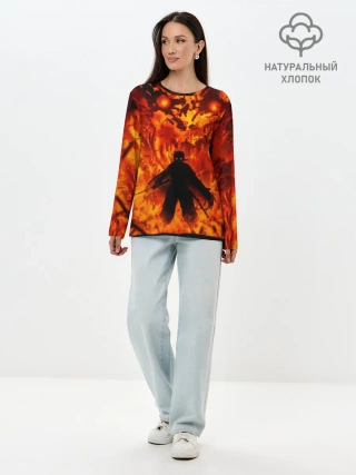 Лонгслив женский. Хлопок / Клинок, рассекающий демонов