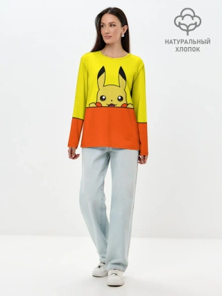Лонгслив женский. Хлопок / Пикачу