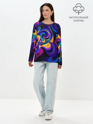 Лонгслив женский. Хлопок / Абстрактный Узор