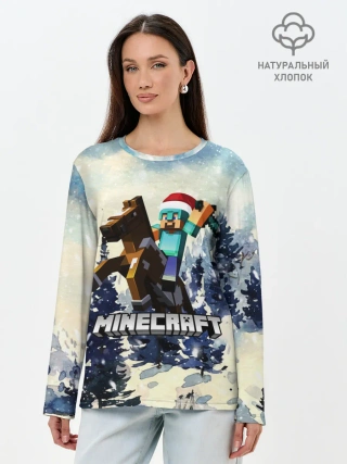Лонгслив женский. Хлопок / Зимний Майнкрафт