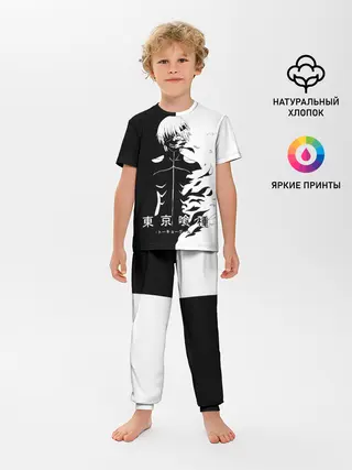 Детская пижама с брюками / Токийский гуль черно белый Кен