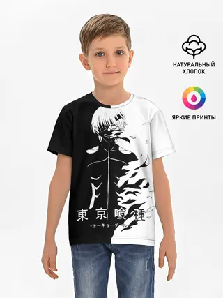 Детская базовая футболка / Токийский гуль черно белый Кен