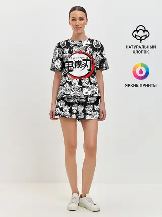 Женская пижама с шортами / DEMON SLAYER / ЛИЦА / УЗОР