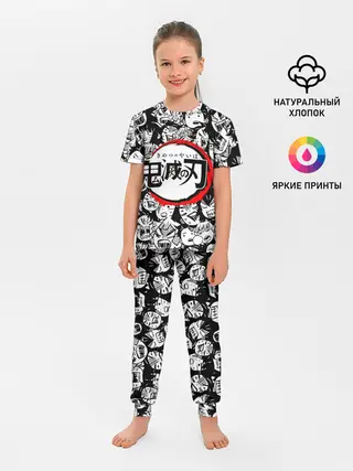 Детская пижама с брюками / DEMON SLAYER / ЛИЦА / УЗОР