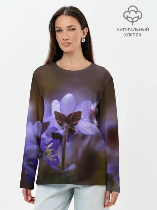 Лонгслив женский. Хлопок / хрупкий цветок фиалка