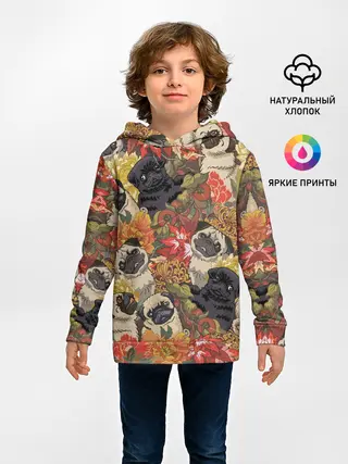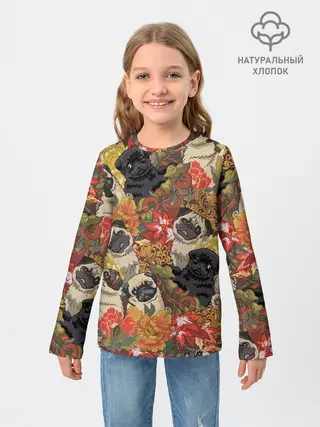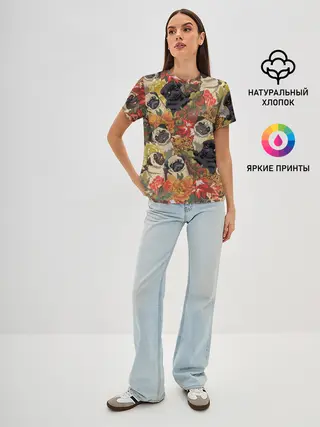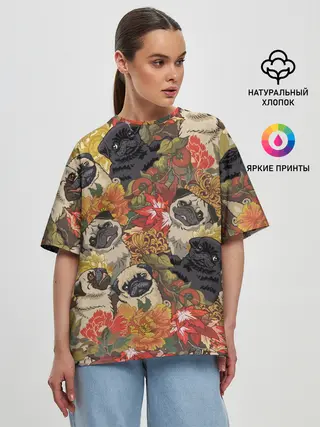 Мужская футболка оверсайз / Мопсики | Цветочки