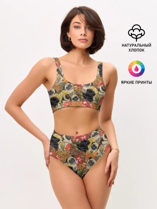 Женские топ и трусы / Мопсики | Цветочки