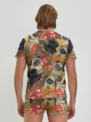 Мужские трусы с футболкой / Мопсики | Цветочки