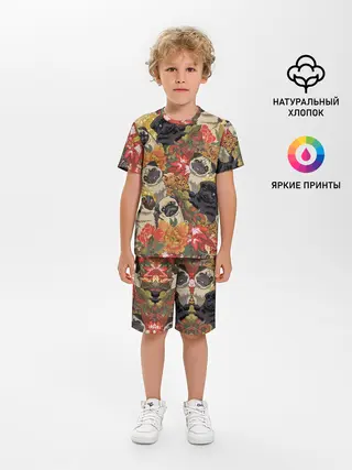 Детская пижама с шортами / Мопсики | Цветочки
